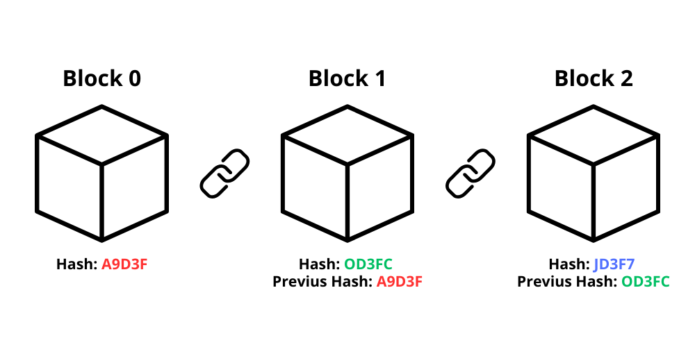 This connection ensures the security and immutability of the chain: if someone tries to modify a block, all the blocks that follow become invalid.